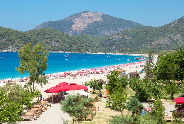 Aan de Turkse zuidkust, zo’n 20 kilometer ten westen van de havenstad Fethiye, vind je het strand dat algemeen wordt beschouwd als het mooiste van Turkije. Ölüdeniz is de ultieme droom van een strand, gelegen aan een aquamarijnblauwe lagune en omzoomd door bergen begroeid met dichte dennenbossen. Het is ook een veilig strand. Het kalme en ondiepe water van de lagune maakt het een perfecte bestemming voor een gezinsvakantie.