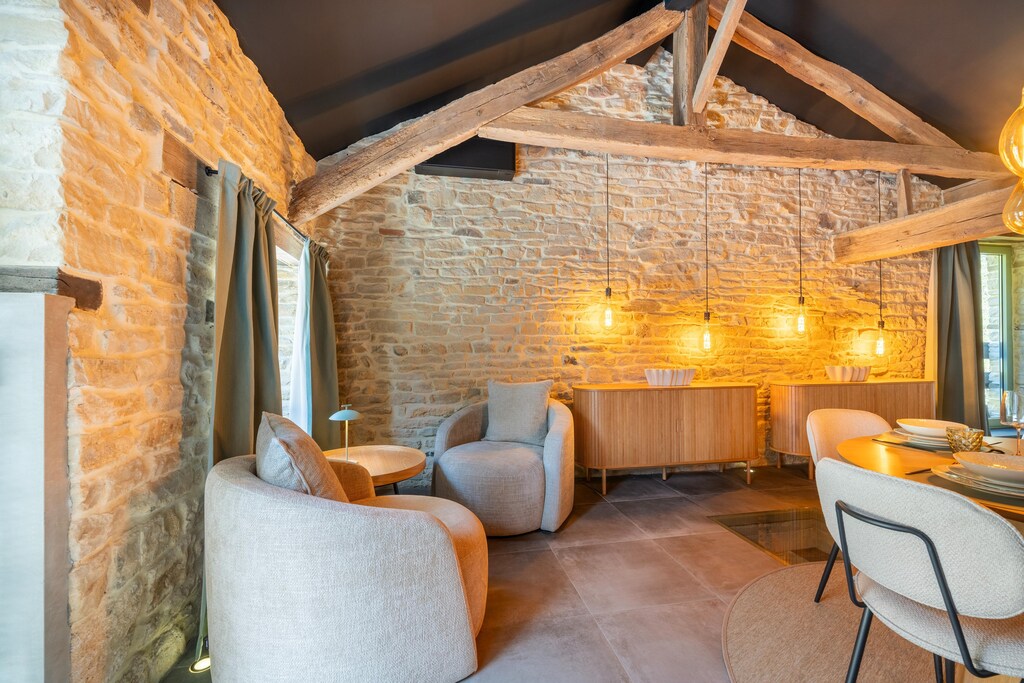Wij verbleven 2 nachten in dit mooie gerestaureerde pand. Over de inrichting en aankleding is erg goed over nagedacht!! Alles is aanwezig. Met de nodige moderne technelogie. Enkel deed de "openhaard" onder de tv het niet, maar dat vonden wij niet zo heel erg. De tv is draaibaar, dat je zowel in bed als in de zetels/eettafel tv kan kijken. Alles was kraakschoon en netjes. Bij binnenkomst rook ik een aangename geur. De jacuzzi was ook al lekker warm. Enkel bij het douchen had ik wat hinder. Je moet de knop boven de kraan stevig indrukken vooralleer er water uit de douchekop komt (werkt met een timer) dit had wel ergens vermeld mogen staan, want ik heb best lang staan te klungelen. Het bed en de kussens waren naar mijn mening veel te hard, maar echt hard. Het pand ligt in een doodlopende straat (aan het einde) wat veel privacy geeft. Erg fijn!