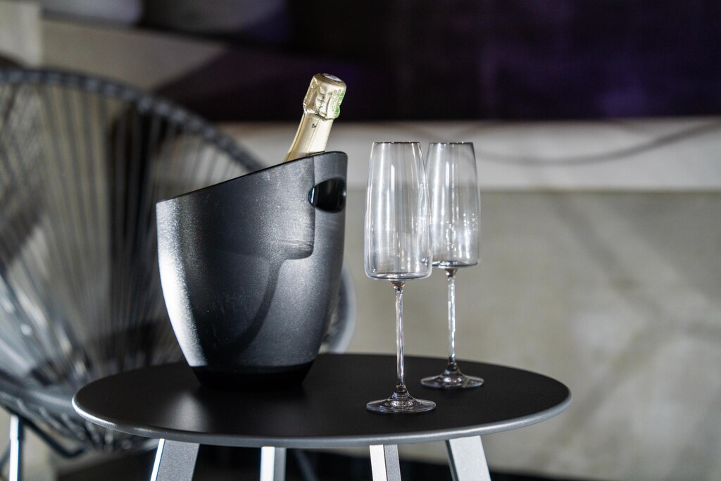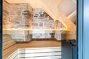 Op de begane grond vindt u een gezellige woonkamer met een comfortabele zithoek, ideaal om te ontspannen na een dag verkennen. De kitchenette is uitgerust met een spoelbak, koelkast en magnetron. De ruime slaapkamer beschikt over een luxe tweepersoonsbed (180 x 200 cm, tweepersoonsdekbedden) en een bad voor een moment van intieme ontspanning. Een moderne badkamer met een stijlvolle inloopdouche completeert de begane grond en biedt alle comfort van thuis in een elegante omgeving.