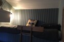 Recent gerenoveerde bungalow met woon/slaapkamer met zithoek (1 x 2 persoonsbedbank), tv, pellets kachel, eethoek en kitchenette met 4 kookplaten, combi-oven, dampkast en koelkast. Enkele treden leiden naar de 2 slaapkamers (1 met 2 x 1 pers; bed en 1 met stapelbed), een toilet en inloop douche. De eettafel kan worden omgezet in een biljarttafel.