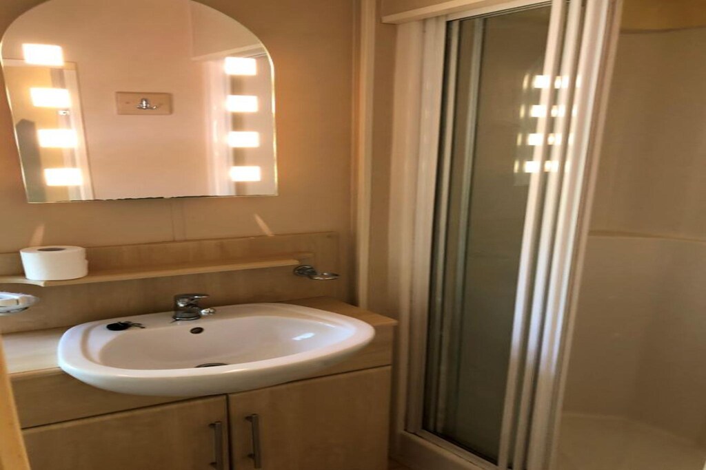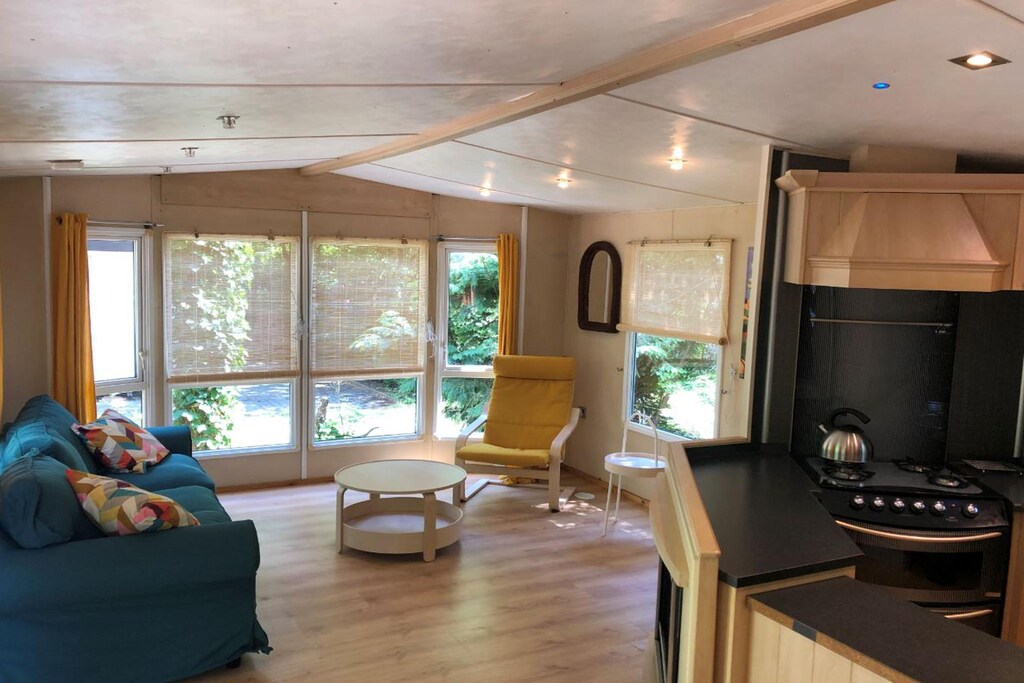 Het chalet beschikt over twee gezellige slaapkamers: een hoofdslaapkamer met een comfortabel tweepersoonsbed en een tweede slaapkamer met twee eenpersoonsbedden, perfect voor een goede nachtrust. De badkamer is voorzien van een wastafel, douche en een apart toilet voor extra gemak. Geniet van moderne voorzieningen zoals gratis wifi en digitale tv, en met verwarming voor koelere nachten zorgt dit chalet ervoor dat u het gezellig en comfortabel heeft. Er is ook handige parkeergelegenheid direct bij het chalet.