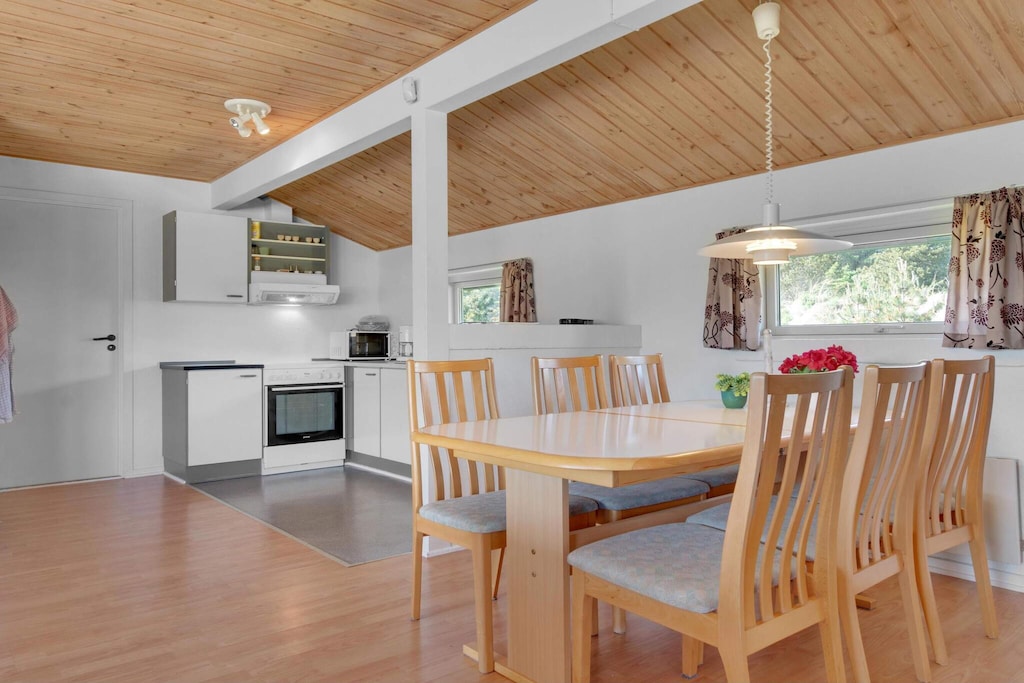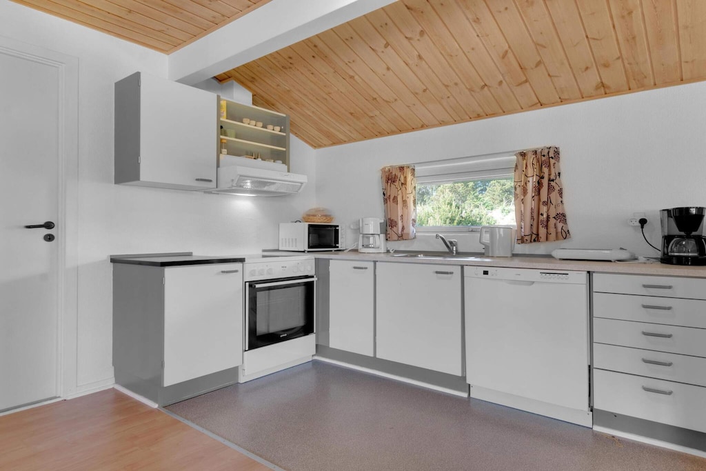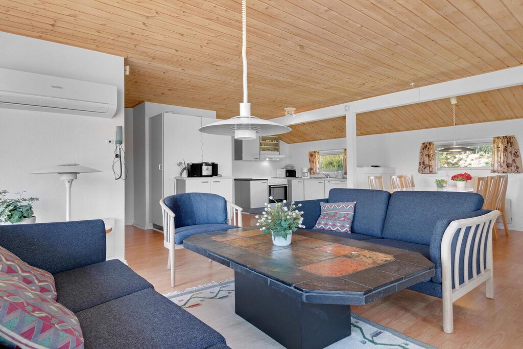 Dieses umweltfreundliche Ferienhaus setzt auf grüne Energie und verfügt über Solarmodule und nachhaltiges Wohnen. Das Haus liegt nur 2,3 km vom berühmten Vergnügungspark Fårup Sommerland und dem breiten Sandstrand von Blokhus entfernt und bietet eine perfekte Mischung aus Entspannung und Abenteuer. Egal, ob Sie Nervenkitzel oder Ruhe suchen, die Lage ist ideal für beides. Das Haus ist auf Komfort ausgelegt, da sich alle Zimmer auf einer Ebene befinden. Es umfasst einen gemütlichen Küchen-Essbereich, ein schönes Wohnzimmer und drei gut ausgestattete Schlafzimmer, die reichlich Platz für 6 Gäste bieten. Das Badezimmer ist mit einer Sauna und einem Whirlpool ausgestattet, sodass Sie nach einem Tag voller Entdeckungen stilvoll entspannen können. Draußen können Sie die wunderschöne natürliche Umgebung des Sommerhauses genießen. Die Lage des Hauses sorgt dafür, dass Sie sich in der Nähe des Zentrums von Løkken und Blokhus befinden, aber dennoch weit genug vom Trubel entfernt, um einen ruhigen Rückzugsort zu finden. Der großzügige Außenbereich ist ideal, um Sonne zu tanken und die ruhige Atmosphäre zu genießen. Bitte beachten Sie, dass das Rauchen im Ferienhaus verboten ist und Jugendgruppen nicht gestattet sind. Bestellen Sie bei der Buchung unbedingt Wäschepakete, um zusätzliche Verwaltungsgebühren zu vermeiden.