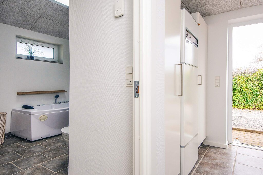 Gemütliches Ferienhaus für eine Familie mit Whirlpool im Bad. Liegt im malerischen Ferienhausgebiet bei Høll, in der Nähe von Strand und Wald. Das Ferienhaus bietet eine helle und einladende Atmosphäre mit moderner Einrichtung und allen notwendigen Geräten. Es gibt drei gemütliche Schlafzimmer und einen Dachboden, der besonders bei Kindern für Begeisterung sorgt. Das Herzstück des Hauses ist die große Wohnküche in offener Verbindung mit dem Wohnzimmer. Es gibt sowohl ein Gäste-WC als auch ein modernes Badezimmer mit Dusche. Im Freien können Sie die langen Sommerabende auf der großen Terrasse genießen. Der Garten ist von Hecken umgeben, was für eine private und ungehinderte Atmosphäre sorgt. Außerdem stehen ein Grill und Gartenmöbel zur Verfügung. Das Ferienhaus liegt in einer kinderfreundlichen Gegend nur ca. 400 m von einem kinderfreundlichen Strand entfernt sowie in der Nähe von Einkaufsmöglichkeiten. Von hier aus sind es nur wenige Kilometer zu größeren Städten wie Vejle und Fredericia. Dort finden Sie zahlreiche Aktivitäten und Attraktionen, darunter Legoland und den Zoo von Givskud.A refundable deposit might be charged closer to your check-in date. The security deposit ensures a smooth stay and covers any additional services or consumption charges.This deposit covers utilities consumed during your stay and any additional services that may be taken.The final amount will be adjusted based on actual meter readings, actual usage of extra services, and any remaining balance will be refunded within 21 days after checkout.This deposit simply acts as a prepayment for charges that you would anyways pay for, ensuring a seamless stay and check-out experience.