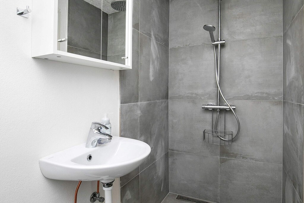 Værelserne med toilet og bad / Tæt på vandet / God akustik i fællesrummet / Super dejlig terrasse / Helt igennem et skønt sommerhus