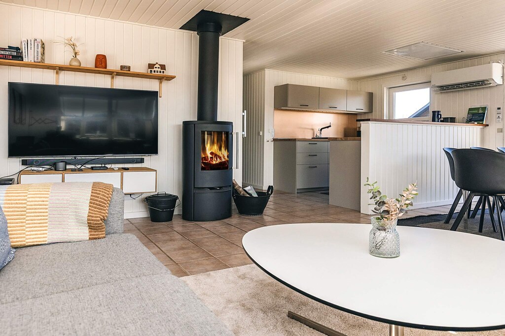 Det er et dejligt sommerhus på en rolig vej i et dejligt skovområde, Tæt på vand og med hav-kig, Dejligt indrettet og masser af udstyr, Huset er udstyret med klimaanlæg som er et hit,