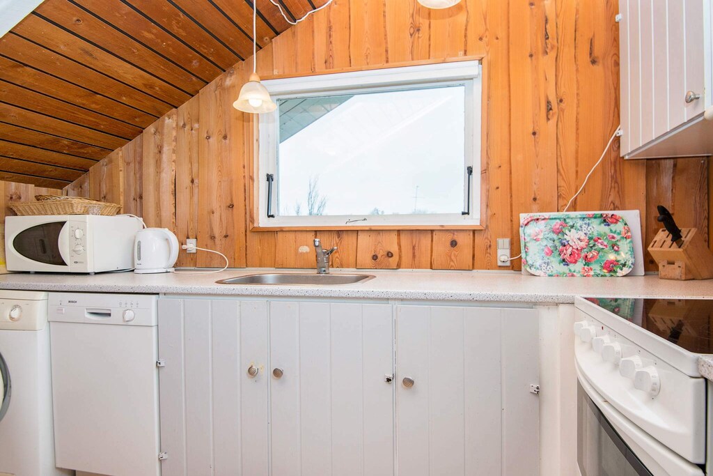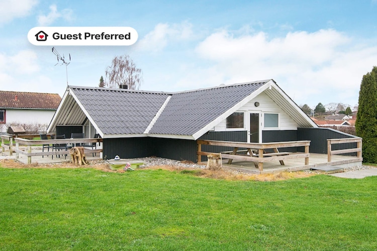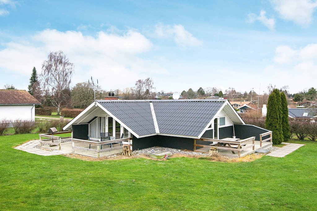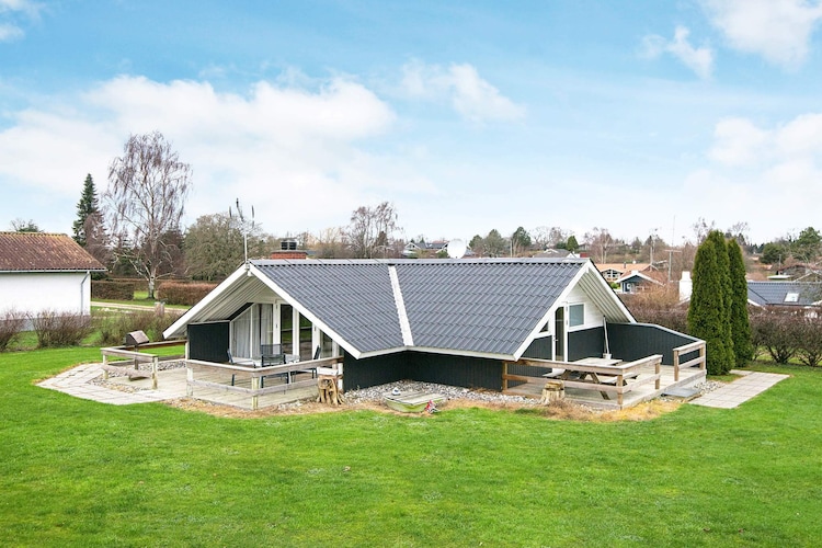 Traditioneel vakantiehuis in het populaire vakantiehuisgebied Trappendal bij Hejlsminde. Het huis biedt door zijn grote ramen binnen veel daglicht en vanuit de woonkamer heeft men uitzicht op het gedeeltelijk overdekte terras en verder in de tuin.