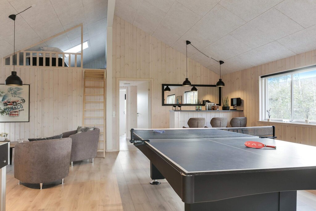 Bei diesem wunderschönen Ferienhaus wurde an nichts gespart. Das Ferienhaus wurde von einem Architekten entworfen und ist stilvoll mit schönen Möbeln und großen, hellen Zimmern eingerichtet. Das Ferienhaus liegt in einem schönen Ferienhausgebiet in Marielyst. Marielyst ist bekannt für seinen schönen Strand und sein gemütliches Stadtleben mit vielen verschiedenen Cafés, Eisdielen und Geschäften. Dieser Ferienort strahlt besonders im Sommer Leben und fröhliche Tage aus. Das Ferienhaus verfügt über viele verschiedene Einrichtungen. Die absolute Lieblingsbeschäftigung der Gäste ist ein Bad im 18 m² großen Swimmingpool mit Wasserrutsche und römischer Treppe. Im sprudelnden Whirlpool und der schönen Sauna können Sie das volle Gefühl von Wohlbefinden und Verwöhnung erleben. Viel entspannender geht es nicht. Man sagt, dass die Zeit wie im Flug vergeht, wenn man Spaß hat – und das werden Sie in diesem Sommerhaus besonders erleben. Es gibt einen Aktivitätsraum mit Billard- und Tischtennisplatte, Tischfußball, Darts und PlayStation 4. Eine Sofagruppe und eine Bar bieten ausreichend Möglichkeiten zum Entspannen beim Spielen. Das Ferienhaus bietet Platz für 16 Gäste. Es gibt sechs Doppelzimmer, zwei davon mit Fernseher. Die restlichen vier Betten befinden sich auf dem Dachboden, der besonders bei Kindern und Jugendlichen beliebt ist. Der Wohn-/Essbereich ist gemütlich und dennoch hell und einladend mit einem Dachfenster und großen Fenstern. Die Küche verfügt über zwei Backöfen, einen Geschirrspüler und einen Kühlschrank – genug Platz für all Ihre leckeren Speisen. Der lange Esstisch bietet Blick auf den Poolbereich. So verbindet die Wohn-/Essküche das Ferienhaus und ermöglicht es Ihnen, auch bei unterschiedlichen Aktivitäten zusammen zu sein. Insgesamt verfügt das Poolhaus über drei Badezimmer. Auf der Terrasse können Sie in der Sonne entspannen oder ein leckeres Steak grillen. Es gibt viel Platz für alle, um sich zu vergnügen und das dänische Wetter zu genießen. Draußen gibt es auch eine Steckdose für ein Elektroauto. Nicht zur Vermietung an Jugendgruppen verfügbar.