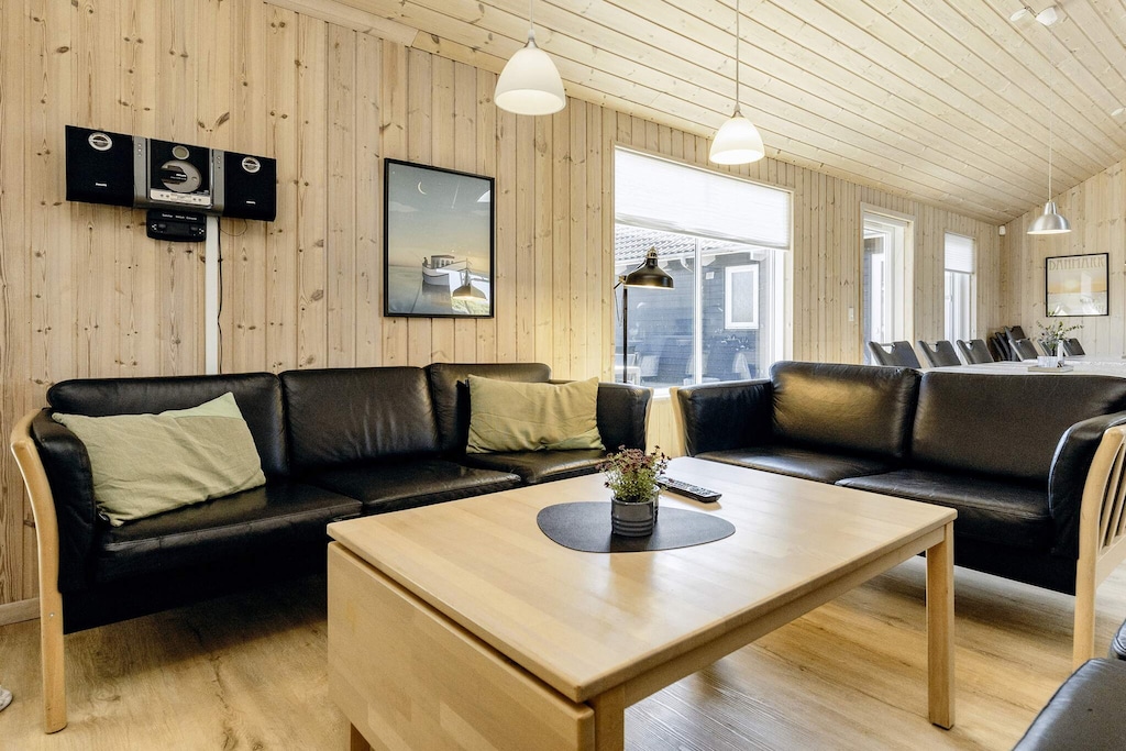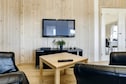 De woonruimte van het vakantiehuis is smaakvol ingericht, met modern meubilair, een houtkachel, TV en Playstation. Het centraal geplaatste keuken-/woongebied is onder andere uitgerust met twee keramische kookplaten en twee vaatwassers, zodat het koken voor tot 20 personen en de daaropvolgende afwas sneller kan verlopen. Het vakantiehuis wordt verwarmd met elektrische verwarming en een energiezuinige warmtepomp.