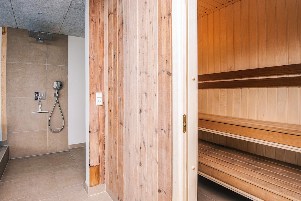 Voor ultieme ontspanning is er een prachtige poolruimte met spa en sauna – perfect voor koelere dagen of om jezelf te verwennen.
