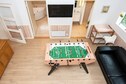 Dieses gemütliche Ferienhaus in Skaven vereint Komfort, Aktivität und Entspannung. Die perfekte Lage, nur etwa 1200 Meter vom Ringkøbing Fjord entfernt, bietet einen ruhigen Rückzugsort und gleichzeitig einfachen Zugang zu einem der schönsten Naturgebiete Dänemarks. Das Haus ist durchdacht konzipiert, sodass sich jeder Quadratmeter praktisch, wohnlich und einladend anfühlt – eine wunderbare Wahl für Familien oder Freundesgruppen. Im Mittelpunkt des Hauses steht die offene Wohnküche, der ideale Treffpunkt für gemeinsame Mahlzeiten, gute Gespräche und gemütliche Abende am Kaminofen. Für alle, die es lieber etwas spielerischer mögen, lädt der Aktivitätsraum mit Tischfußball zu freundschaftlichen Wettkämpfen ein. Nach einem Tag im Freien ist die Wellnessecke ein echtes Highlight: Genießen Sie ein Bad im Whirlpool für zwei Personen oder entspannen Sie in der Sauna, die bequem Platz für drei Personen bietet. Diese kleinen Annehmlichkeiten machen aus gewöhnlichen Abenden Momente purer Entspannung. Mit zwei Doppelzimmern, zwei Zweibettzimmern und einem Dachboden mit Platz für zwei Zustellbetten bietet das Haus viel Platz für Erwachsene und Kinder. Draußen ist das große und einladende Naturgrundstück mit Schaukel und Sandkasten für die kleinen Gäste ideal. Erwachsene können sich auf der Terrasse entspannen, die Ruhe genießen oder die Abenteuer des nächsten Tages planen. Die Lage ist ideal, um den Fjord zu erkunden, lange Spaziergänge zu unternehmen oder einfach die Ruhe der dänischen Landschaft zu genießen. Alles in allem bietet dieses Ferienhaus alles, was Sie für einen unvergesslichen und erholsamen Urlaub am Ringkøbing Fjord brauchen.A refundable deposit might be charged closer to your check-in date. The security deposit ensures a smooth stay and covers any additional services or consumption charges.This deposit covers utilities consumed during your stay and any additional services that may be taken.The final amount will be adjusted based on actual meter readings, actual usage of extra services, and any remaining balance will be refunded within 21 days after checkout.This deposit simply acts as a prepayment for charges that you would anyways pay for, ensuring a seamless stay and check-out experience.