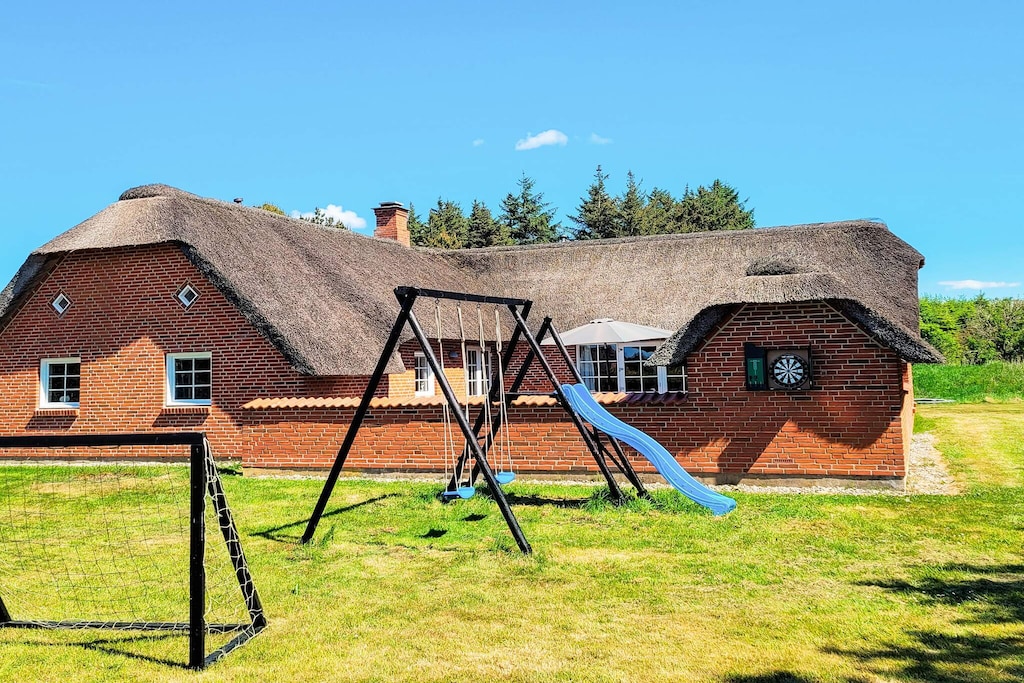Reetgedecktes Ferienhaus mit Swimming- und Whirlpool, Sauna sowie klimafreundlicher Wärmepumpe. Liegt nur etwa 1,6 km vom herrlichen Nordseestrand bei Vester Husby entfernt. Ideal für den Familienurlaub. Der einladende Poolbereich ist mit einem 20 m² großen Pool mit Gegenstromanlage, Rutsche, einem kleinen Kinderbassin sowie einem Whirlpool für max. 5 Personen eingerichtet. Auch befinden sich hier eines der insgesamt drei Badezimmer des Hauses und die Sauna. Das zuletzt 2016 grundlegend renovierte Ferienhaus ist äußerst klimafreundlich mit sowohl Luft-Luft- als auch Luft-Wasser-Wärmepumpe ausgestattet, die stromsparend heizen und so auch zur Reduktion der Nebenkosten beitragen. Zudem wurde eine Lüftungs- und Wärmerückgewinnungsanlage installiert, die für ein zu jeder Jahreszeit angenehmes Innenklima beiträgt. Das laufend instandgehaltene Ferienhaus bietet für die Kinder ein separates Spielzimmer mit eigenem Fernseher und einigen Spielsachen darunter LEGO. Im Außenbereich stehen auf dem gut 5.000 m² großen Rasengrundstück zudem Schaukel, Sandkasten, Fußballtor, Boule-Feld und Federball-/Volleyballnetz für den Freizeitspaß bereit. Es gibt außerdem zwei Hochstühle, zwei Kinderbetten und eine Babywanne für die Kleinsten im Haus. Das Ferienhaus ist mit zwei separaten Schlafbereichen mit je drei Schlafzimmern und einem dazugehörigen Bad eingerichtet. Insgesamt verfügen vier der Schlafzimmer über ein Doppelbett sowie Flachbildfernseher an der Wand, zudem zwei Schlafzimmer mit je zwei Einzelbetten und Flachbildfernseher. In allen Zimmern ist Holzfußboden verlegt. Die Küche bietet viel Schrankplatz und ist u.a. mit großem Kühl-/Gefrierschrank, Cerankochfeld, Nespresso-Kaffeemaschine und Heißluftofen umfassend eingerichtet. Im Wohnzimmer und in der Küche sind praktische Fliesenfußböden verlegt. Im großen Wohnraum finden Sie einen großen Flachbildfernseher mit Chromecast zum Streamen über Highspeed Internet (100/100 MB). Der Aufenthaltsraum ist geräumig und bietet Platz für 12 Personen. Ein Bügelbrett und Bügeleisen sind im Haus vorhanden. Der große, abgeschirmte Sonnenhof im Außenbereich bietet sich zum Entspannen, Sonnenbaden und Grillen an. Das Haus wird öfters privat von den Eigentümern selbst genutzt, wodurch ein hoher Standard gewährleistet ist und alles für einen gemütlichen Familienurlaub in der Nähe der Nordsee bereit ist. Bitte beachten Sie, dass das Haus nicht an Jugendgruppen vermietet wird.A refundable deposit might be charged closer to your check-in date. The security deposit ensures a smooth stay and covers any additional services or consumption charges.This deposit covers utilities consumed during your stay and any additional services that may be taken.The final amount will be adjusted based on actual meter readings, actual usage of extra services, and any remaining balance will be refunded within 21 days after checkout.This deposit simply acts as a prepayment for charges that you would anyways pay for, ensuring a seamless stay and check-out experience.
