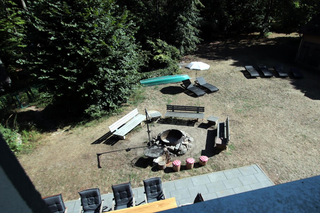 Groot XXL-huis op een idyllische boslocatie in het Barnimer Land, op slechts 100 m van het Werbellinermeer. Het 1,3 hectare grote tuin/natuurperceel met eigen aanlegsteiger aan het meer, vuurplaats en klein bosgebied, ligt in een absoluut rustige omgeving aan het einde van de wijk Altenhof. Via een klein bospad bereikt u direct het heldere, schone water van het meer, waar u vanaf de steiger in het koele water kunt springen. Het rustige dorp beschikt over een eigen jachthaven, een kleine boulevard, bootverhuur en twee openbare badgebieden.