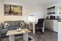 Binnen beschikt het appartement over een warme woonkamer met een smart-tv, open haard en een eenpersoonsslaapbank. De open keuken is uitgerust met een koffiezetapparaat, magnetron, vaatwasser en koelkast, waardoor het bereiden van maaltijden een fluitje van een cent is. Een gezellige slaapkamer met een boxspringbed voor twee personen en een moderne badkamer met douche en föhn zorgen voor comfort. Elektrische verwarming, een overdekt terras, tuinmeubilair, een barbecue en een eigen parkeerplaats maken de voorzieningen compleet voor een ontspannen verblijf.