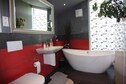 Ligbad, Douche (inloopdouche), Wastafel, Toilet, Haardroger