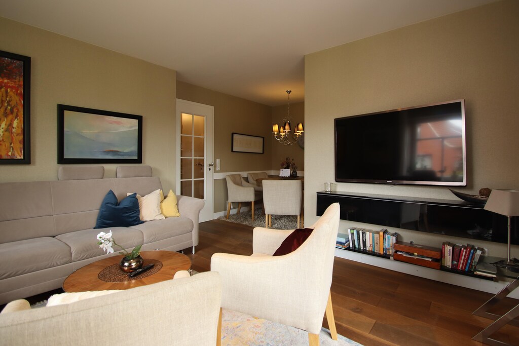 Breng uw volgende vakantie door in een gerenoveerd appartement dat uitnodigend en modern is ingericht. Met de nabijheid van de Dornumersieler Tief, zoals de rivier lokaal wordt genoemd, kunt u uw voeten in het water zetten of gewoon ontspannen. Ook voor grotere waterspelletjes hoeft u niet ver te gaan: nog geen 1 km naar het openluchtzwembad of 500 m naar het strand. Zoals u kunt zien, is uw accommodatie de perfecte omgeving voor een heerlijke gezinsvakantie Vakantie in Dornumersiel: Wandel door de legendarische wadden, die sindsdien tot werelderfgoed zijn verklaard, of door het achterland van de kust, dat wordt gekenmerkt door geest en moeras. Activiteiten zoals fietsen, beachvolleybal, kitesurfen of diepzeevissen zijn slechts enkele van de vele aanbiedingen voor sportliefhebbers in de regio. Bovendien biedt de Noordzeebadplaats Dornumersiel een adembenemend uitzicht op de voor de kust gelegen eilanden Baltrum en Langeoog. Alles is snel te bereiken met de fiets of te voet: het groene zandstrand met speeltuin, voetbal- en volleybalvelden, het verwarmde buitenzwembad met zeewater, de kotter en de jachthaven en winkels. Ideaal voor uw vakantie! Activiteiten in de buurt: Geniet van lange wandelingen langs de dijk en een vlak landschap om te fietsen. Beleef een dagje strand en laat de aangename Noordzeebries je gezicht strelen. Het Wereldnatuurerfgoed Waddenzee nodigt jong en oud uit om dit unieke landschap keer op keer te herontdekken. Voor dagen met slecht weer biedt de "Sturmfrei" in Neßmersiel talloze activiteiten, spelletjes en plezier. Of speel een partijtje golf op de nabijgelegen golfbaan Lütetsburg. Daarna kunt u daar het kasteelpark bezoeken.