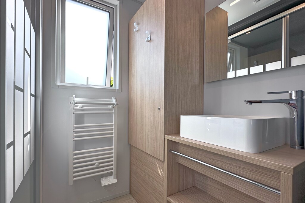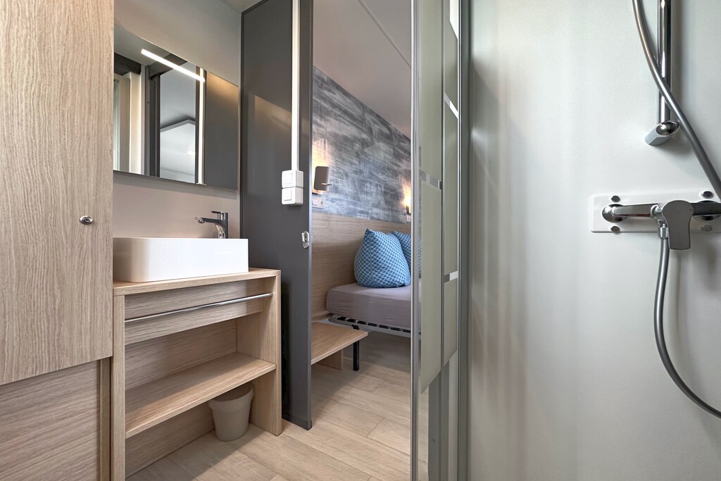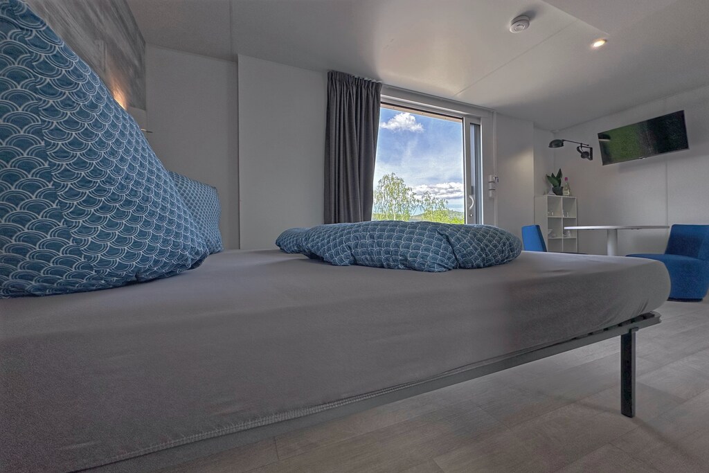 Wir haben im Tiny Chalet 11 gewohnt. An allen Fenstern und der Tür befindet sich Insektenschutz, die Matratze ist gut, es ist mit allem ausgestattet, was man benötigt. Man muss wissen, dass es wirklich klein ist und sich natürlich an warmen Sommertagen aufheizt. Vom See kommt abends aber eine angenehm kühle Brise, so dass es sich auch schnell wieder abkühlt. Es liegt direkt am Weg, so dass gefühlt jeder direkt daran vorbeigeht. Es gibt andere Chalets, die mehr Privatsphäre bieten.