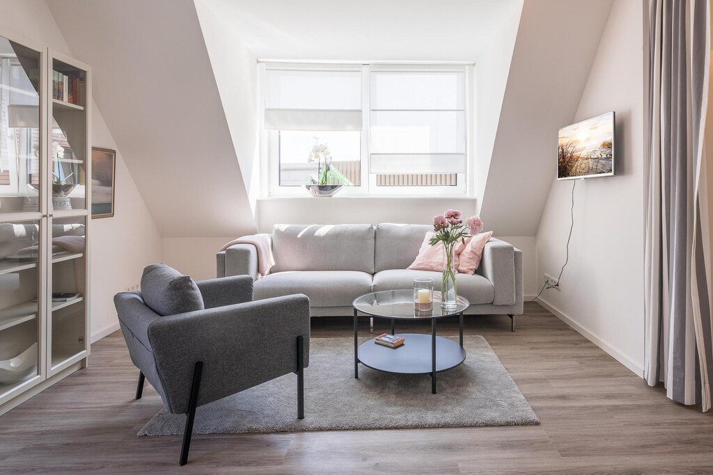 Het appartement ligt tegenover het kasteelpark en op slechts enkele minuten lopen van de idyllische haven, het centrum van Husum met zijn vele mooie winkels en het winkelcentrum THEO. Zeer goede restaurants en gezellige cafés zijn te vinden in het stadscentrum, aan de?Untere Neustadt? en in de haven. De bioscoop (altijd met horeca!) is op loopafstand. En recht tegenover de Noordzee / Dockkoog is het 3 minuten rijden en 20 minuten lopen (de zonsondergangen zijn de moeite waard!) Het treinstation van Husum is op loopafstand. Met de trein bereikt u St. Peter-Ording en Westerland / Sylt in slechts een uur.