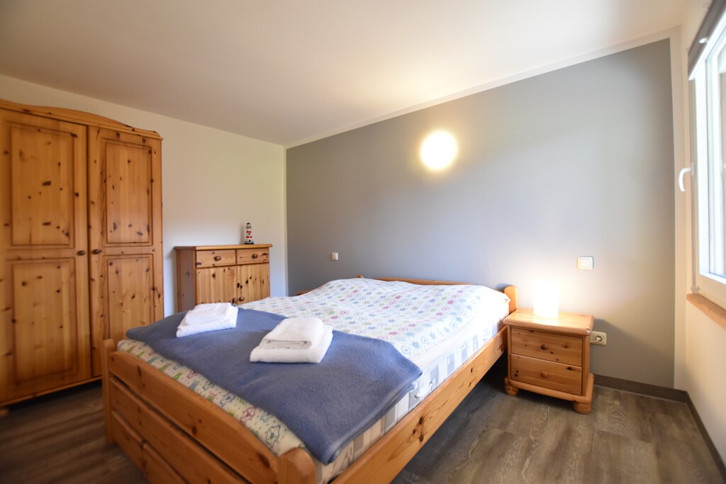 De slaapgelegenheid bestaat uit een stapelbed in één slaapkamer en een doorloopkamer met een luxe kingsize bed. De badkamer is voorzien van een douche, toilet en wastafel, en doordachte extra's zoals een kinderbedje en een kinderstoel maken het appartement geschikt voor peuters.