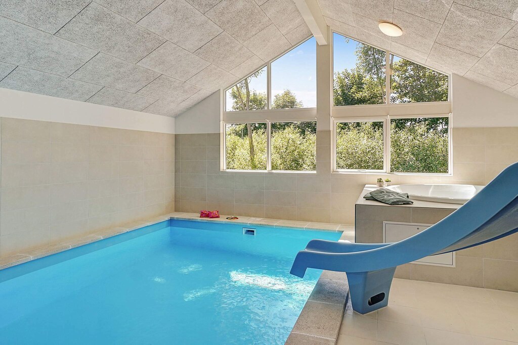 Dieses moderne, große Skanlux-Aktivferienhaus liegt nur 900 Meter vom Sandstrand des Ostsee-Resorts Olpenitz entfernt und ist somit ideal für einen Familienurlaub geeignet. Es verfügt über einen luxuriösen Poolbereich mit einem 18 m² großen Swimmingpool, einer Wasserrutsche, einem Badezimmer, einem integrierten Whirlpool und einer Sauna für vier bis sechs Personen. Ein Gegenstromsystem ermöglicht tägliches Schwimmtraining mit anschließender Entspannung. Das Haus ist in zwei Schlafbereiche unterteilt, die jeweils über ein eigenes Badezimmer verfügen. Außerdem das Bad im Poolbereich. Eine Fußbodenheizung sorgt zu jeder Jahreszeit für Komfort. Der geschmackvoll eingerichtete Wohn- und Essbereich umfasst eine Stereoanlage, einen Flachbildfernseher, einen DVD-Player, einen Hochstuhl, eine Sofalounge und einen Holzofen. Es gibt sieben Schlafzimmer mit flexiblen Bettenanordnungen sowie einen geräumigen Schlafboden. Die Küche ist mit zwei Herden, Backöfen, Kaffeemaschinen und Geschirrspülern komplett ausgestattet. Im Aktivitätsraum können Sie Billard, Tischtennis, Darts, PlayStation 4 und Tischfußball spielen. Eine gemütliche Bar mit Kühlschrank lädt nach einem erlebnisreichen Tag zum Entspannen ein. Im Außenbereich können sich die Kinder an einer Schaukel, einer Rutsche und einem Sandkasten erfreuen, während die Erwachsenen sich auf den möblierten Terrassen – davon 16 m² überdacht – entspannen und grillen können. Bitte beachten Sie, dass die Nutzung des Pools, der Sauna und des Spas je nach Nutzung und Saison zu höheren Nebenkosten führen kann. Bauarbeiten in der Umgebung können gelegentlich Lärm verursachen. Die Kaution und die Bettwäschegebühren müssen unter Angabe Ihrer Buchungsnummer per Überweisung an die angegebene IBAN und BIC bezahlt werden. Eine Vermietung an Jugendgruppen ist nicht möglich.