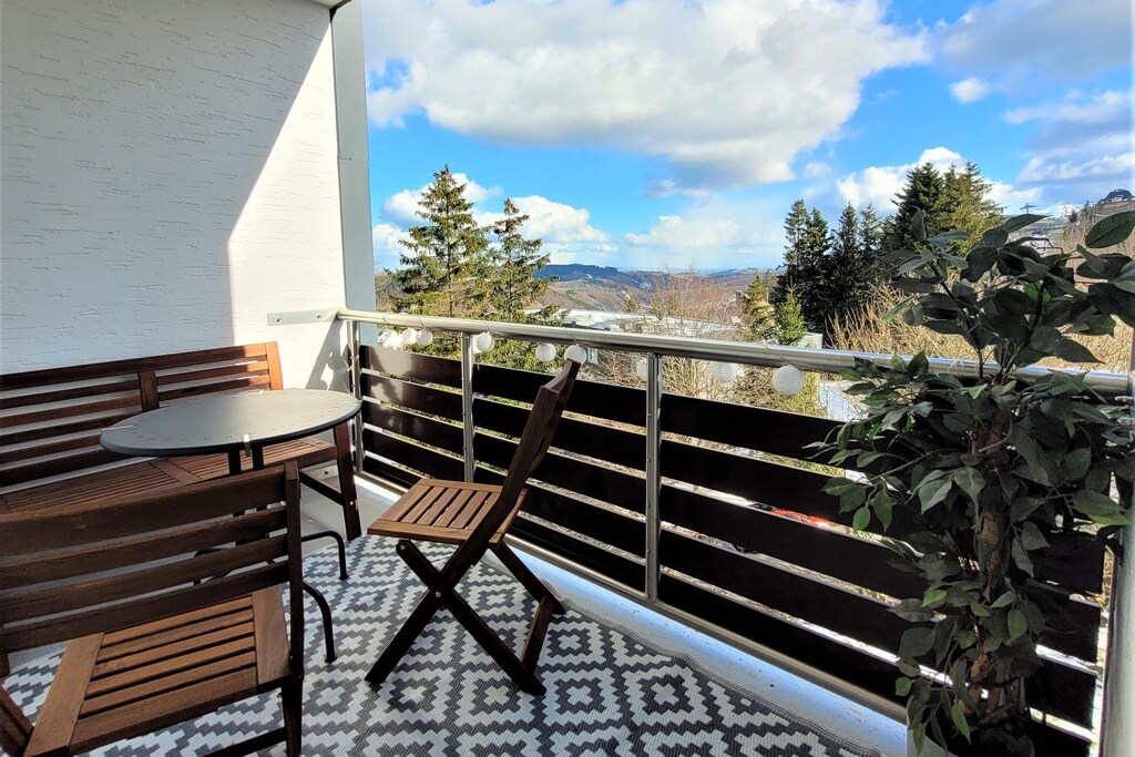 Het balkon op het zuidwesten biedt een prachtig uitzicht op de beroemde bobsleebaan van Winterberg.