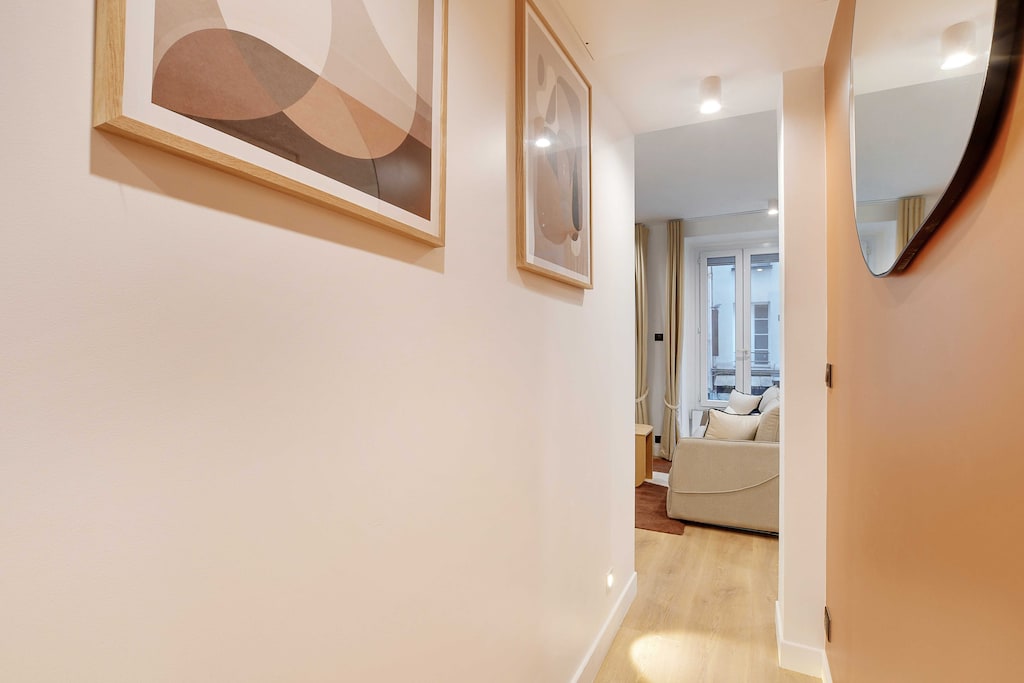 Pros: * A fantastic location, just a short 3-4 minute walk from the Louvre Museum, Despite being so central, it was peaceful at night, as early as 10pm and even as late as 8am in the morning, * The bathrooms are impeccably clean, which is incredibly important to us, Cons: * The apartment is compact (we were informed of this by other reviews), so we decided to store our suitcases in the living room as the bedrooms are too small, This didn't really bother us as we only used the apartment for sleeping, * Every evening, from around 6pm, there was a group of 3-4 young people hanging around near the entrance to the building, Most of the time they moved out of the way when we approached, but once one of them barely budged, partially blocking our entry, I suspect they were sometimes smoking marijuana, Once we were inside, they didn't cause any disturbance with noise or litter, but their presence made us uneasy when entering the building, Despite this, overall still a 5/5,