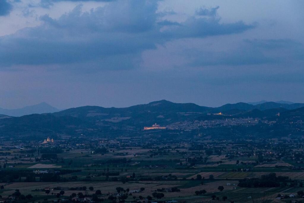 Perfekt beliggenhed til at udforske nærliggende Assisi og Perugia, Udsigten fra balkonen over Assisi om natten var magisk