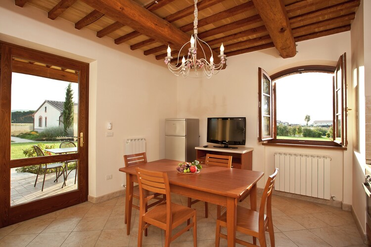 De landelijke vakantiewoning is voorzien van een grote tuin die wordt gedeeld met andere gasten. Er is een balkon en een parkeerplaats voor de auto aanwezig. Het gedeelde zwembad is geopend van mei t/m september en er zijn speeltoestellen voor kinderen.