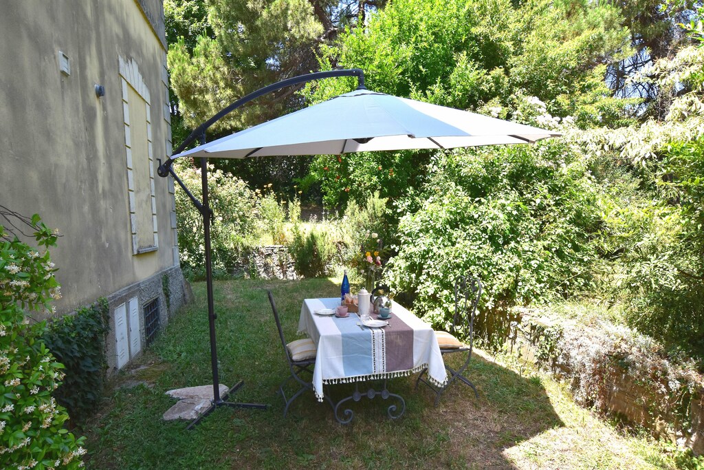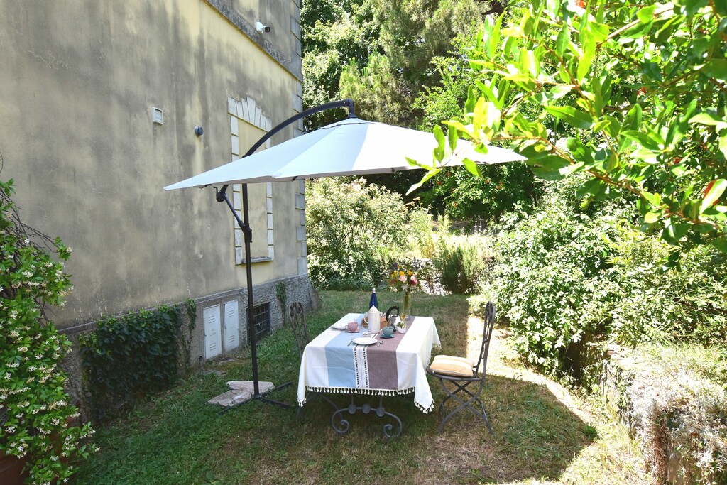 Het appartement heeft toegang tot een eigen terras en tuin, waar u kunt ontspannen met tuinmeubilair, een parasol en een barbecue om buiten te eten. Er is ook een gedeelde tuin en parkeergelegenheid op het terrein. Gezinnen met kinderen zullen de beschikbaarheid van een babybedje waarderen en wifi zorgt ervoor dat u tijdens uw verblijf verbonden blijft.
