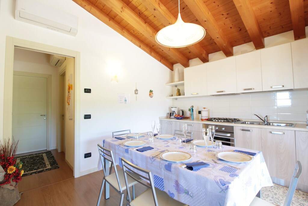 Eettafel, Kookplaat, Waterkoker, Fornuis, Afzuigkap, Koffiezetapparaat, Oven, Afwasmachine, Koel-/vriescombinatie, Balkon of terras