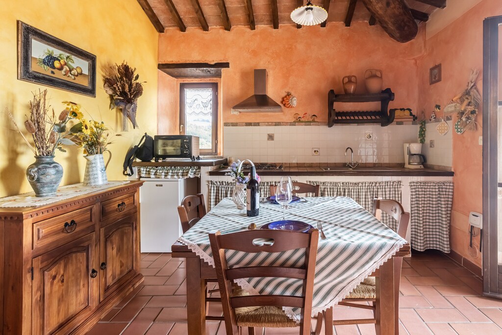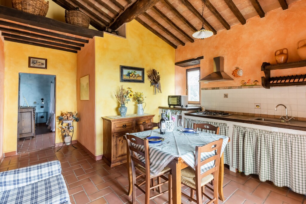 Het appartement ligt in een rustige en mooie omgeving in het Toscaanse landschap. Een mooi groot Italiaans appartement met een groot balkon met een schitterend uitzicht. Een keuken, waarin alles aanwezig is wat je nodig hebt. Er zijn ook bbq's aanwezig. 2 grote slaapkamers met prima bedden, kussens en matrassen. Ook voor grote mensen. Badkamer is ruim met een fijne douche. Het zwembad is groot, schoon en er zijn voldoende ligbedden met parasols. Zeer vriendelijke gastvrouwen! Een locatie om aan te bevelen, maar een auto is aan te raden om vanuit het appartement leuke plaatsen te bezoeken.