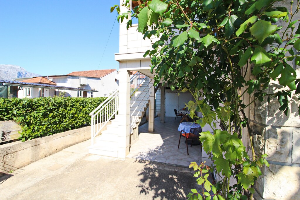 L'appartamento Marita è molto ben attrezzato e fornito di elettrodomestici (lavatrice, lavastoviglie, forno,,,), detersivi, biancheria, stendino e mollette, stoviglie e pentole in abbondanza, Per quanto riguarda la TV, è disponibile il digitale terreste, ma non la parabola, per cui non si possono vedere canali italiani, Il posto auto è coperto e comodo, C'è un ampio terrazzo con pergolato di kiwi con tavoli, sedie e lettini per il relax, La posizione dell'appartamento è ottima: in 20' a piedi si raggiunge la città di Korcula, dove ci sono pochi parcheggi disponibili, In pochi minuti di auto si raggiunge Lumbarda con spiagge attrezzate e non attrezzate, Vicino casa ci sono un supermercato, una macelleria e un banchetto che vende verdura, La proprietaria non parla italiano, ma la figlia lo parla molto bene, La signora Marita è molto gentile e ci ha regalato vino, verdura dell'orto e bottiglia di grappa alle erbe! Abbiamo visitato dei posti molto belli, soprattutto quelli più difficili da raggiungere! Per due sere abbiamo cenato all'agriturismo &quot,Grubinjac&quot, a Zrnovo: ottimo cibo alla griglia, posto molto bello e panoramico, tavoli in terrazza sotto le pergole!