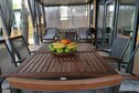 This two bedroom mobile home can accommodate up to six people. It features air-conditioning, free Wi-fi and Internet enabled & SAT TV. The kitchen is equipped with refrigerator, water kettle, microwave, stove, vitro ceramic, kitchen utensils and dining area. One bedroom is furnished with a large double bed, while the other one comes with two single beds. The private bathroom comes with a shower and toilet.