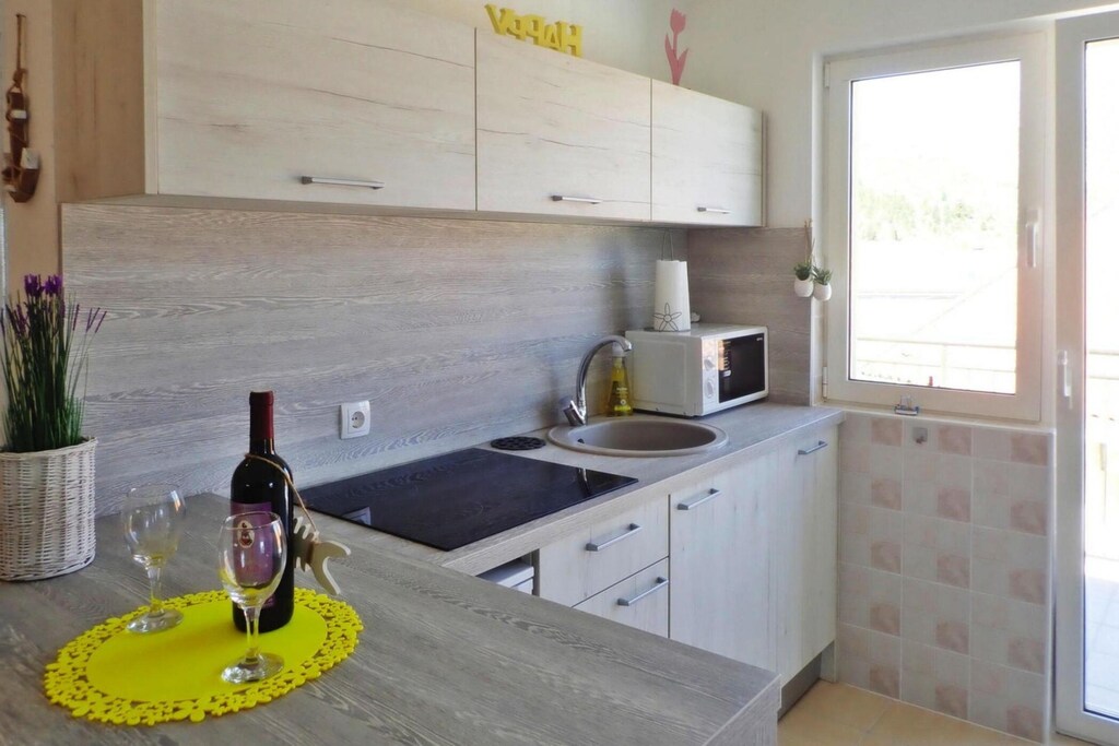Vi havde et behageligt ophold i lejligheden, Den er godt udstyret og komfortabel, hvilket gør den til en perfekt base for vores eventyr omkring Velebit-kanalen, Den anden balkon med udsigt over bjergene tilføjede en dejlig detalje, Landsbyen i sig selv er charmerende med lokale markeder og restauranter i nærheden, Alt i alt et solidt valg for familier eller grupper, der søger et fredeligt tilflugtssted