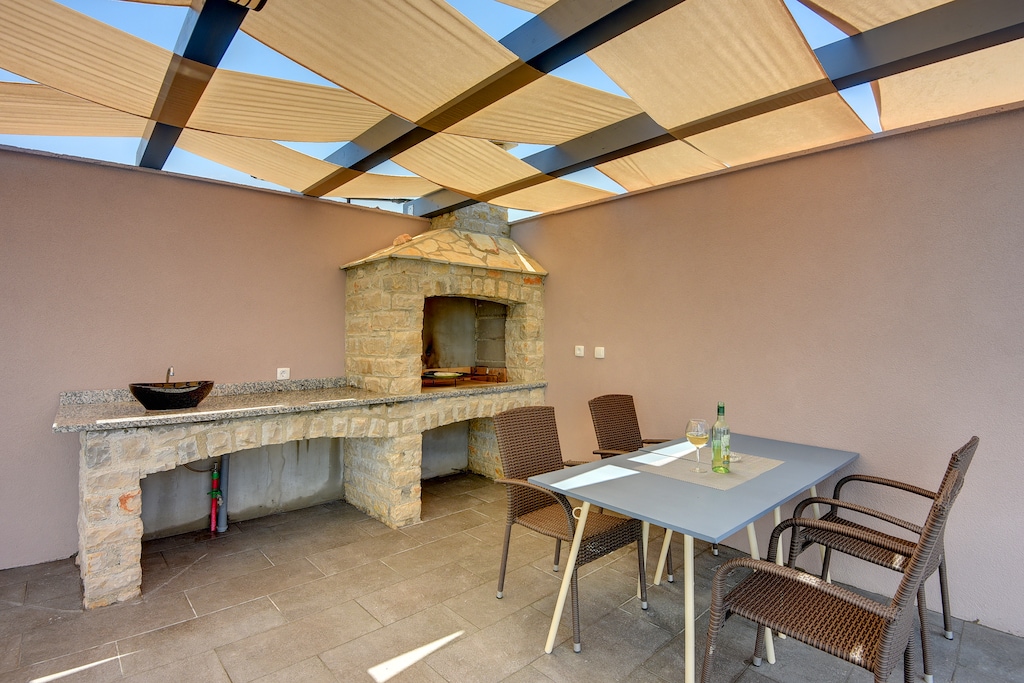 Villa Christine in Valbandon is een nieuw gebouwde villa met een capaciteit voor tien personen. Deze verfijnde villa is met veel aandacht voor de kleinste details ingericht en zal u zeker niet teleurstellen. Het bestaat uit 4 ruime slaapkamers op de eerste verdieping, terwijl de begane grond een woonkamer met eethoek en een volledig uitgeruste moderne keuken heeft. Toegang tot het zwembad is mogelijk vanuit de woonkamer of keuken, en in de buitenruimte vindt u een overdekt terras met barbecue. Internettoegang en eigen parkeergelegenheid zijn aanwezig, terwijl de prachtige stranden van Valbnadon en Fažana slechts een paar kilometer verderop liggen. Alles wat u nodig heeft voor uw zorgeloze vakantie wacht op u in Villa Christine, dus boek uw verblijf zo snel mogelijk en trakteer uzelf op een vakantie in het zuiden van Istrië!