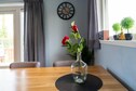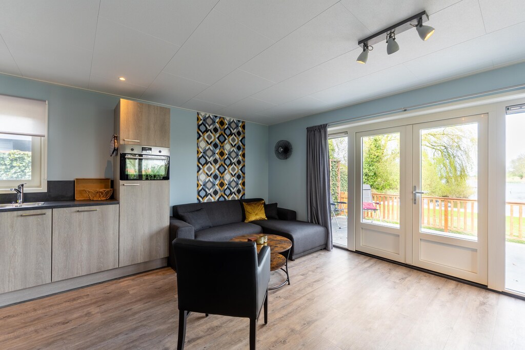 Het vakantiehuis is voorzien van een wasruimte met wasmachine en -droger en de woonkamer is sfeervol ingericht met een tv, een eettafel en een comfortabele zithoek. Op het terras kun je de dag afsluiten met een drankje naar keuze.