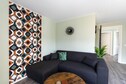 Het vakantiehuis is voorzien van een wasruimte met wasmachine en -droger en de woonkamer is sfeervol ingericht met een tv, een eettafel en een comfortabele zithoek. Op het terras kun je de dag afsluiten met een drankje naar keuze.