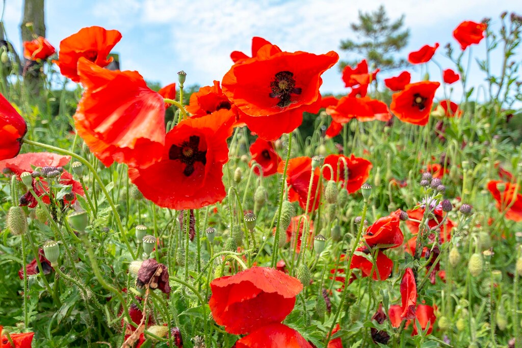 Et vakkert grønt område med fine hager og modne hekkene