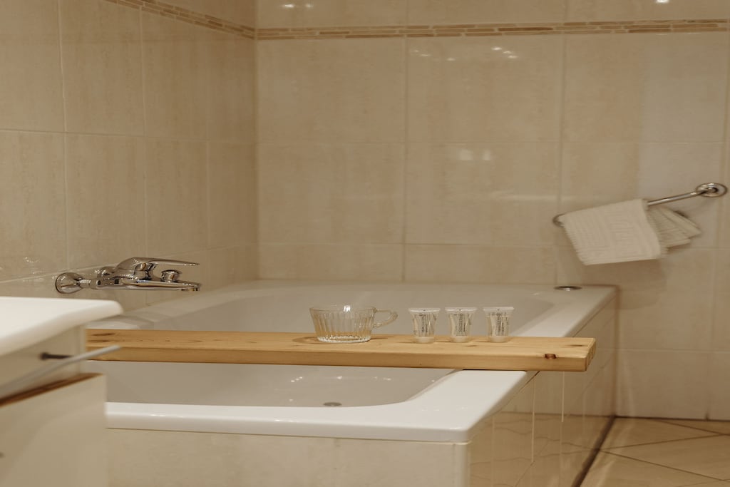 Ligbad, Bubbelbad, Douche, Wastafel, Toilet, Haardroger