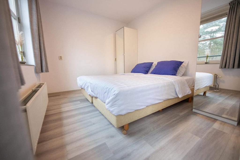 De maisonnettes hebben twee slaapkamers, verdeeld over twee verdiepingen voor extra privacy. Elke slaapkamer is ingericht met twee eenpersoonsbedden (80x200 cm), wat zorgt voor een goede nachtrust. De badkamer, gelegen op de eerste verdieping, is voorzien van een douche en wastafel voor uw gemak. Het appartement biedt ook een klein balkon met tuinmeubilair, perfect om te genieten van de frisse lucht en het uitzicht.