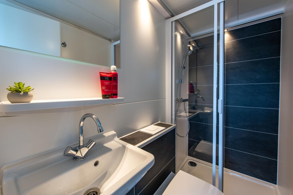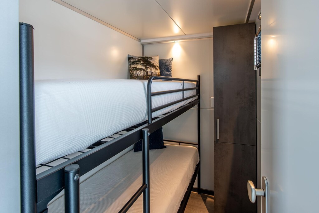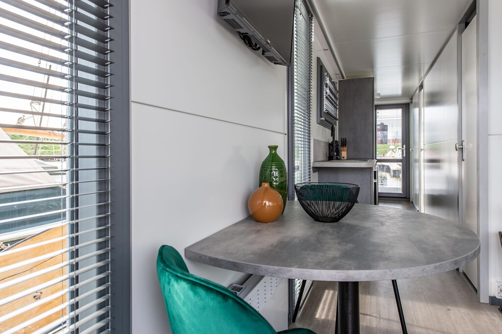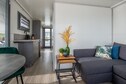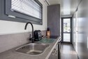 Fornuis (2 kookplaten, elektrisch), Koffiezetapparaat (cups), Combimagnetron, Koelkast (+ vriesvak)
