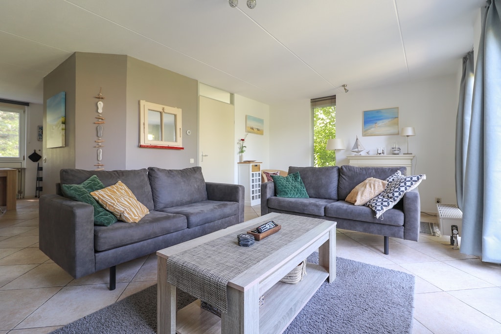 Deze halfvrijstaande vakantiehuizen zijn allen aan het water gelegen en beschikken over een eigen karakter. Zo kan de inrichting van de vakantiehuizen sterk van elkaar verschillen, maar beschikt u altijd minimaal over de faciliteiten zoals aangegeven. De woonkamer is voorzien van een fijne zithoek en wordt, door de grote raampartijen, voorzien van een fijne dosis daglicht. De open keuken is volledig ingericht en voorzien van onder andere een afwasmachine. Op mooie dagen kunt u, vanuit uw tuin met terras en tuinmeubilair, genieten van het uitzicht over het water.