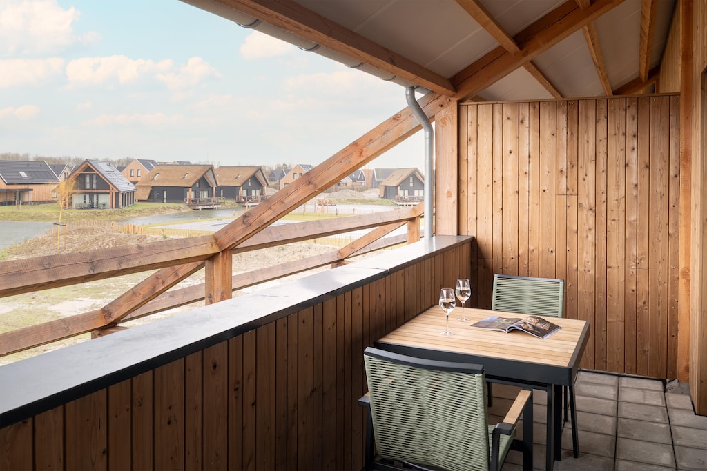 Het vakantiehuis, gelegen aan de kreek, direct naast het hoofdgebouw met al haar faciliteiten, is comfortabel en compleet ingericht en beslaat twee etages. Op de begane grond vindt u er een fijne woonkamer met smart-TV met streamingfunctie. In de moderne keuken vindt u er onder andere een combi-oven, afwasmachine en wijnkoelkast. Er is één slaapkamer met een badkamer ensuite met douche. In de hal is er een apart toilet. Boven beschikt u over één slaapkamer met badkamer ensuite met ligbad, douche en toilet. Er is tevens een smart-TV met streamingfunctie. De bedden zijn van het type 1-pers. boxspringbed, al dan niet in een 2-pers. opstelling.