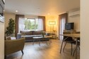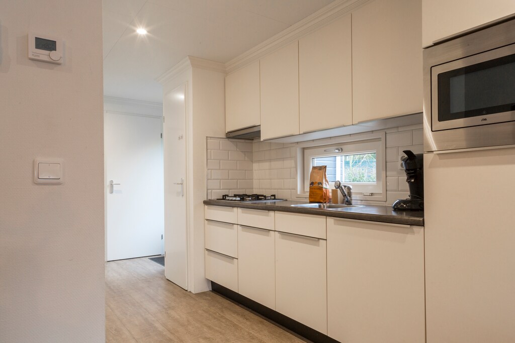 De open keuken is goed uitgerust voor uw gemak, inclusief een 4-pits gasfornuis, koelkast met vriesvak, Senseo-koffiezetapparaat, combi-oven, vaatwasser en waterkoker - alles wat u nodig hebt om uw maaltijden gemakkelijk te bereiden.