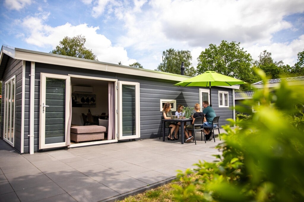 Loop naar buiten naar het terras, waar u tuinmeubilair vindt dat perfect is om te ontspannen en te genieten van de omgeving. Houd er rekening mee dat het interieur en exterieurontwerp per chalet kunnen verschillen, wat zorgt voor een unieke ervaring tijdens uw verblijf.