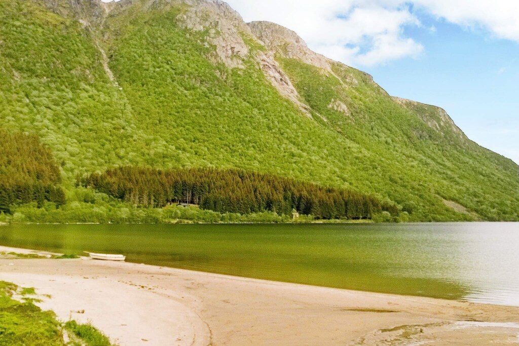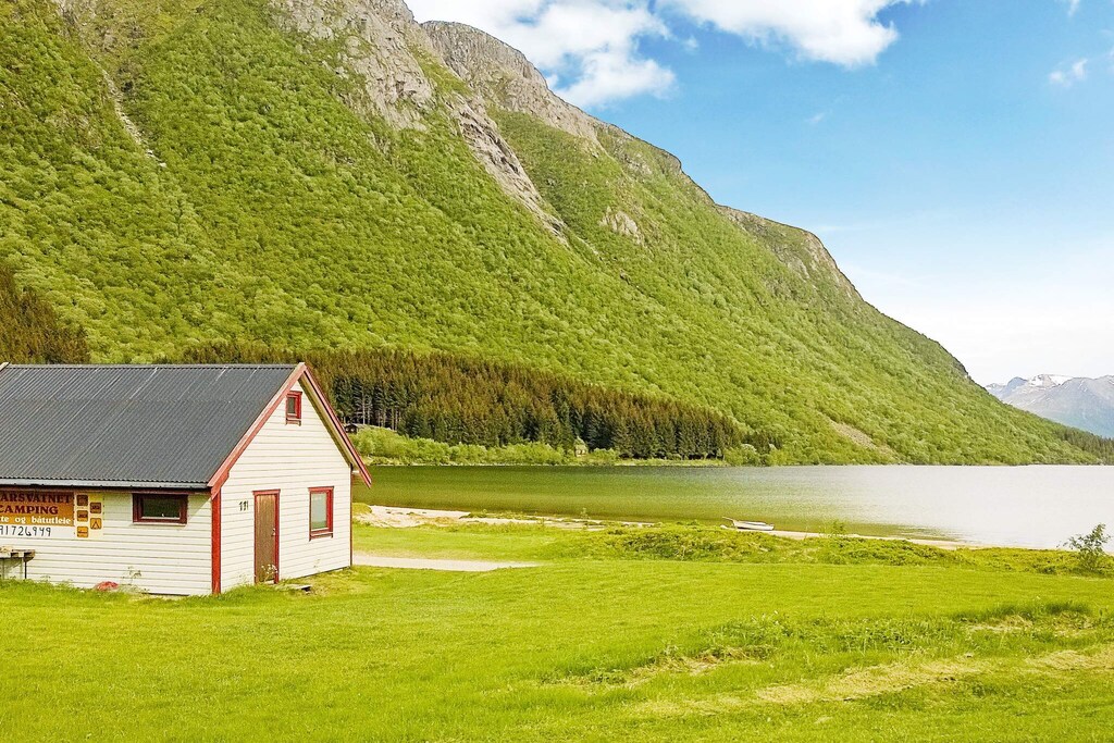 Ferienhaus mit einfachem Standard. Liegt attraktiv am See Skarsvatnet, auf der idyllischen Insel Åmøya mit Brückenverbindung zum Festland. Das Ferienhaus befindet sich unweit der Häuser 20926 und 20928 und bietet eine schöne Aussicht über den See und zum Gebirge der Umgebung. Eine preiswerte Unterkunft für Gäste ohne Ansprüche an Komfort und Ausstattung. Gutes Spielareal sowie seichteres Seeufer am Haus. Im See angelt man hauptsächlich Forelle und Saibling. Etwa 1 km zur Küste, auch dort beißen die Fische willig an. Es kann zwischen den Inseln und auch draußen auf offener See gefischt werden. Netze verfügbar und mehrere Boote zur Auswahl. Ein Boot m. 5 PS Motor liegt am Wasser ohne Aufpreis für Sie bereit. Zudem sind weitere Boote an der Küste mit 15 bzw. 25 PS starken Motoren tage- oder wochenweise, zu mieten. Die mietbaren Boote werden den Mietern von insgesamt 3 Häusern angeboten, wer zuerst bestellt, erhält den Zuschlag. Die Insel hat ein vielseitiges Wanderterrain zu bieten. Hier finden Sie noch unberührte Natur. Relativ leichte Wanderpfade führen hinauf zum Gipfel, von wo man einen fantastischen Blick auf das Meer und einige Inseln hat. Zu empfehlen ist auch ein Tagesausflug mit zum Gletscher Svartisen, dem zweitgrößten seiner Art in Norwegen. Vom Holandsfjord fahren mehrmals täglich Boote bis an den Gletscherrand heran. Weiter nördlich liegt der weltweit stärkste Gezeitenstrom Saltstraumen, der viermal täglich gewaltige Wassermassen befördert. Machen Sie auch einen Abstecher zum Küstenort Bodø, wo es z.B. ein interessantes Flugzeugmuseum gibt.