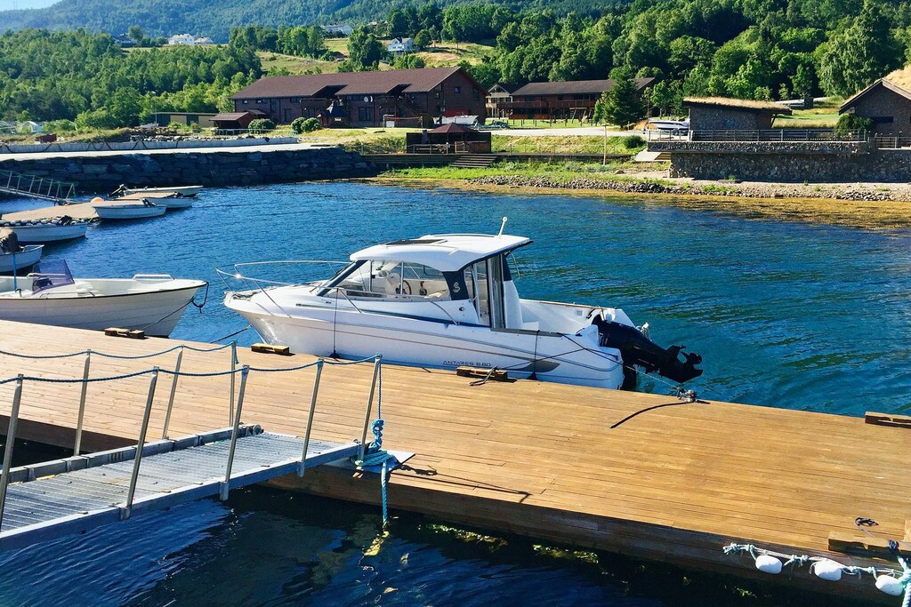 Schönes Resort mit Gemeinschaftspool, direkt am Fjord und umgeben von einer fantastischen Fjord- und Berglandschaft. Die Ferienwohnung befindet sich in der 1. Etage und hat einen 41 m² gr. Küchen-/Wohnbereich mit zeitgemäßer Ausstattung. Zwei der SZ sind mit je einem Doppelbett, das dritte mit einem Einzelbett eingerichtet. In der Wohnung gibt es deutsche TV-Sender über ASTRA. Vor Ort steht eine ca. 4.000 m2 große Gemeinschaftsfläche für Ballspiele, inklusive Sandkasten und Spielgeräte, zur Verfügung. Etwa 80 m weiter steht eine gemeinschaftliche 200 m2 große Terrassenfläche mit Strandlinie und Grillhütte bereit. Grillhütte und ein Außen-Whirlpool können auf Anfrage vor Ort zusätzlich angemietet werden. Außerdem gemeinschaftlicher, etwa 50 m² großer Außenpool in der Anlage, im Zeitraum 20.06. bis etwa 05.09. täglich geöffnet ab 12 und bis 18 Uhr. Die Badetemperatur ist wetterabhängig und liegt bei etwa 20 bis 26 Grad. Der gute Lachsfluss Eira ist etwa 22 km, der Forellensee Målsvatnet nur etwa 9 km entfernt. Lediglich etwa 10 Min. Bootsfahrt sind es zu einigen der attraktivsten Angelreviere Norwegens. Filetierbank in eigenem Gebäude etwa 70 m weiter. Die genannten Boote liegen vor Ort, etwa 120 m von der Wohnung, in einem privaten Bootshafen vertäut und sind gleichzeitig mit der Wohnung mietbar und vor Ort zahlbar: *1 x 16 Fuß Cresent-Boot mit 20 PS Motor. *3 x 16 Fuß Otasport-Boote mit 20 PS Motor. *5 x 21 Fuß Øien 620F mit 50 PS Suzuki-Motor, GPS/Echolot/Kartenplotter. *1 x 23 Fuß Benetau 680 mit 115 PS-Motor, GPS/Echolot/Kartenplotter. *ein Kajak. *ein Kanu. Für die Kajakmiete ist eine Nasskarte (Zertifizierung) erforderlich. Alle Boote sind versichert. Kann vor Ort gemietet werden: Bettwäsche 200 NOK, 2 Handtücher 50 NOK pro Person. Zahlbar direkt an den Hauseigentümer. Bitte beachten: Gemeinschaftliche Nutzung von Pool und zugehöriger Veranda (ca. 20 m vom Haus) mit den weiteren Gästen vor Ort, die im Umkreis von etwa 200 m wohnen.