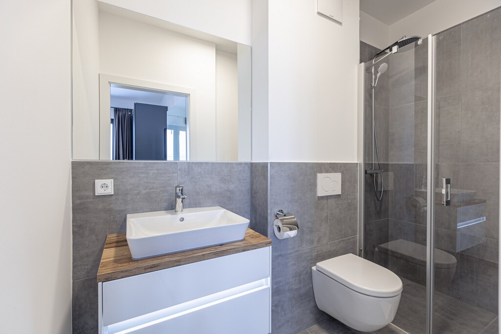 "Ontdek comfort en elegantie in ons appartement op de begane grond, ontworpen voor maximaal 6 gasten. Deze stijlvolle retraite beslaat 55 m² en biedt de perfecte mix van moderne voorzieningen en een serene omgeving. Het appartement beschikt over twee uitnodigende slaapkamers, elk ingericht met luxe boxspringbedden, voor een rustgevend verblijf. Twee goed ingerichte badkamers zijn voorzien van douches, toiletten en haardrogers voor uw gemak.