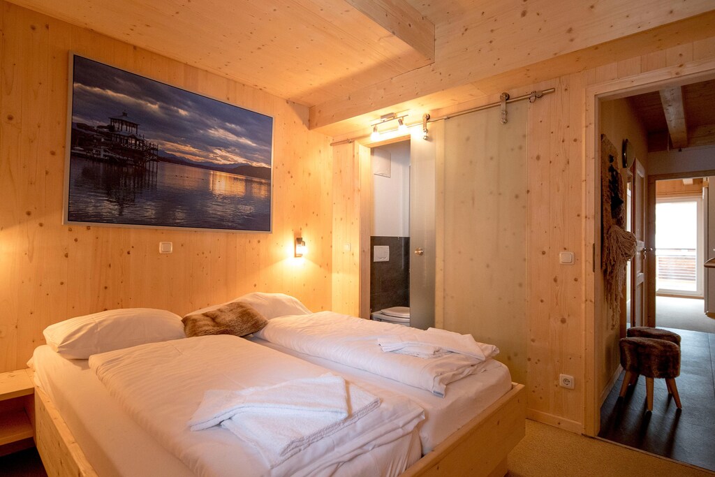 Het chalet beschikt over vijf prachtig ingerichte slaapkamers: drie kamers met comfortabele tweepersoonsbedden, één kamer met knusse stapelbedden en één kamer met twee eenpersoonsbedden, waardoor er verschillende slaapplaatsen mogelijk zijn. Met vier moderne badkamers, elk uitgerust met een douche, is er voldoende ruimte en gemak voor alle gasten. De open keuken is de droom van elke culinaire liefhebber, volledig uitgerust met een keramische kookplaat, oven, vaatwasser, koelkast met vriesvak, broodrooster, waterkoker en koffiezetapparaat. Bij aankomst ontvangt u een startset inclusief vaatwastabletten, afwasmiddel, een spons, vuilniszakken, een schoonmaakdoekje en een theedoek. Extra voorzieningen zijn onder meer gratis WiFi en satelliet-tv, zodat u verbonden en vermaakt blijft. Het chalet beschikt ook over een mooi balkon waar u kunt genieten van het adembenemende berglandschap en de frisse boslucht.