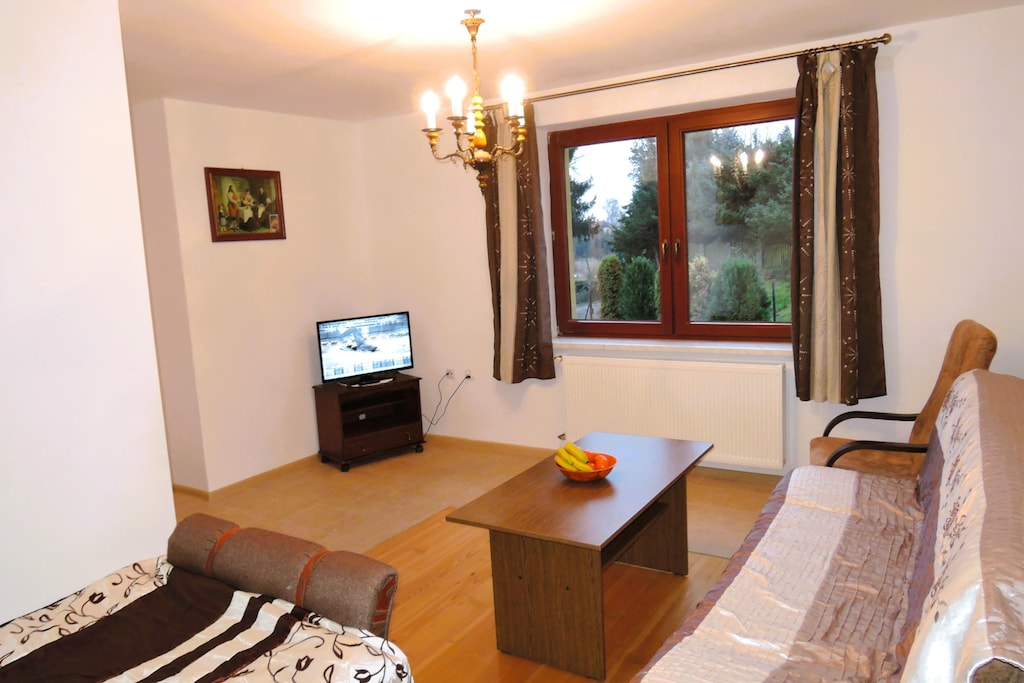 Ideaal voor natuurliefhebbers op een rustige locatie: nieuw gebouwd vakantiehuis met gezellige inrichting en een eigen tuin. Je woont op het perfecte startpunt voor uitstapjes naar Swinoujscie of Misdroy. Ook sportvissers komen hier aan hun trekken, er zijn 7 meren in de omgeving - ideaal voor een vakantie in een rustige omgeving en vlakbij de Baltische Zee! Het kleine dorpje Kolczewo ligt midden op het eiland Wollin, direct aan het meer van Kolzow en op slechts drie kilometer van de stranden van de Oostzee. Hier geniet u van de rust van de natuur, maar bent u toch snel in de levendige badplaatsen aan de Oostzee. Lijnbussen brengen u ook comfortabel naar de steden Kołobrzeg of Świnoujście, en in de zomer rijden ze zelfs vrij frequent. Activiteiten in de buurt : Verbeter uw handicap op de plaatselijke golfbaan, de enige op Wolin Island. Kolczewo grenst aan het meer van Kolzow en de Poolse Oostzee is niet ver weg. U bereikt het strand gemakkelijk via een pad door het bos. U kunt ook de bus rechtstreeks naar Kołobrzeg of Świnoujście nemen, in de zomermaanden rijdt de bus vrij frequent tussen de twee plaatsen. Strandmeerminnen en badliefhebbers vinden hun geluk in de badplaats Misdroy aan de Oostzee, een van de mooiste badplaatsen aan de Poolse kust. Daar is ook het Nationaalparkmuseum gevestigd. Een bezoek aan het bizonverblijf is spannend voor het hele gezin.
