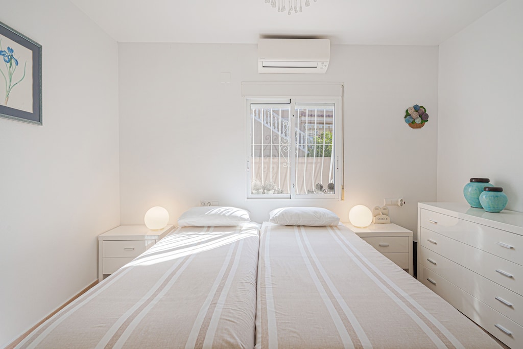 Een optioneel pakket voor nutsvoorzieningen en servicekosten van EUR 200,00 wordt vóór uw aankomst in rekening gebracht. Details worden hieronder gegeven.<br> Ontsnap naar de Costa Blanca met dit charmante vakantiehuis met 3 slaapkamers in Busot, perfect voor maximaal 6 gasten. Gelegen in de rustige Urbanizació la Pisnella, biedt dit gelijkvloerse toevluchtsoord een privézwembad, een zonnig terras en alle comfort van thuis, ideaal voor gezinnen of vrienden die op zoek zijn naar ontspanning en kustavontuur. Binnen is de open keuken uitgerust met een oven en een koelkast, terwijl de woon-eetkamer is voorzien van een tv, een eettafel en een gezellige zithoek. Twee slaapkamers hebben elk een tweepersoonsbed (180 x 200 cm) en de derde heeft twee eenpersoonsbedden, perfect voor kinderen of vrienden. Het huis beschikt ook over twee badkamers: één met een bad en de andere met een douche. Stap naar buiten om te genieten van het privézwembad, de barbecueplek, de parasol en het terras, perfect om te zonnebaden of buiten te eten. Parkeren is mogelijk op het terrein voor extra gemak. Het huis ligt op slechts 9,6 km van Playa Can Campello en op 6,7 km van Club de Golf Bonalba, en ook dicht bij lokale bakkerijen, restaurants en winkels. Luchthaven Alicante ligt op iets meer dan 30 km afstand, waardoor aankomst en vertrek eenvoudig zijn. <br><b> Optioneel nuts- en servicepakket </b><br><b> Een optioneel nutsvoorzieningen- en servicepakket van EUR 200,00 </b> kan voorafgaand aan uw aankomst worden geselecteerd. U ontvangt een aparte communicatie met de betaallink als u dit wilt toevoegen.<br>Dit pakket zorgt voor een zorgeloos verblijf en dekt diensten zoals eindschoonmaak, nutsverbruik, serviceondersteuning en bescherming tegen kleine schade of incidentele kosten tijdens uw verblijf.<br>Gasten die dit liever zelf regelen kunnen dat doen, mits de accommodatie bij uitchecken in goede staat wordt achtergelaten.